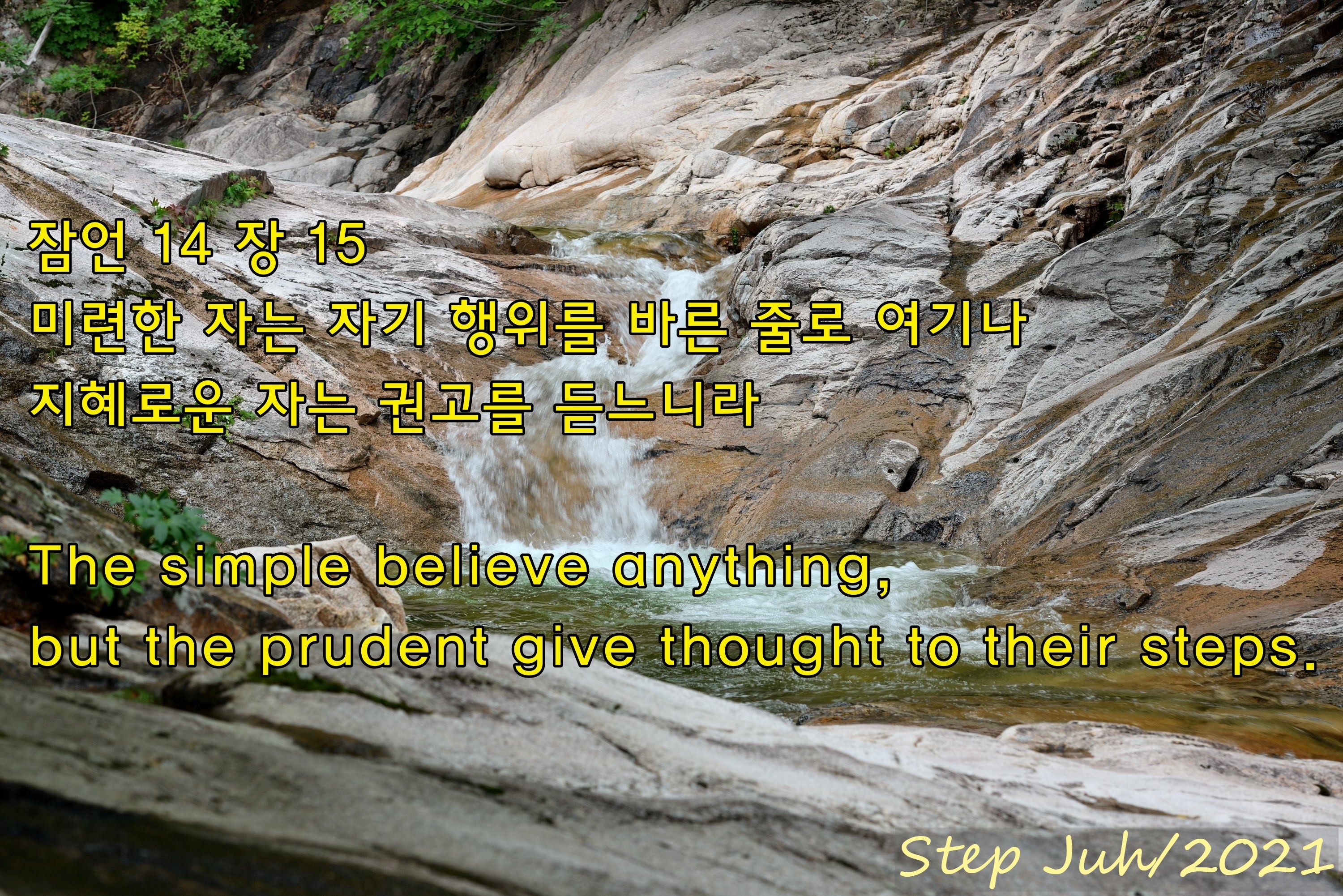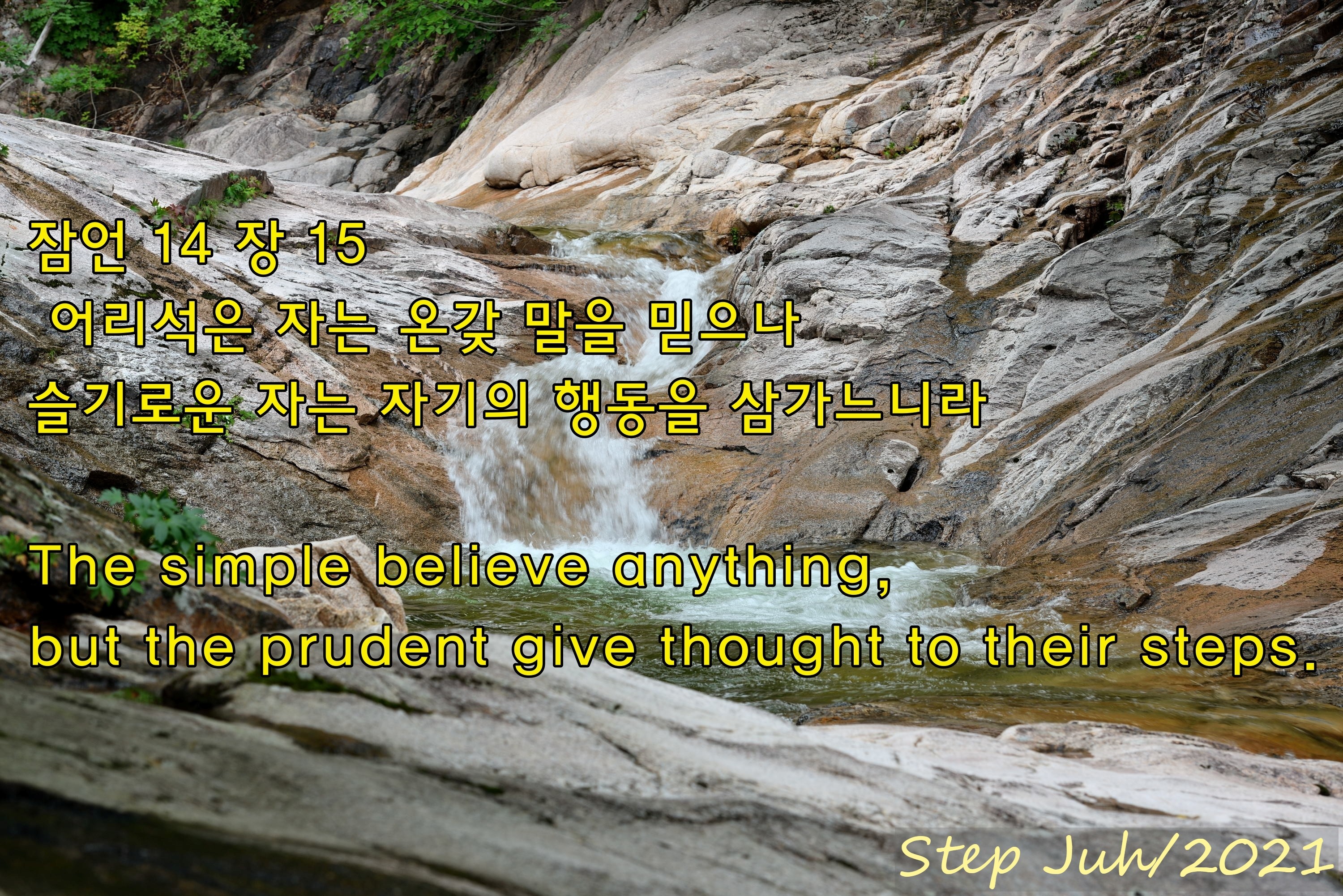 어리석은 자는 온갖 말을 믿으나 슬기로운 자는 자기의 행동을 삼가느니라