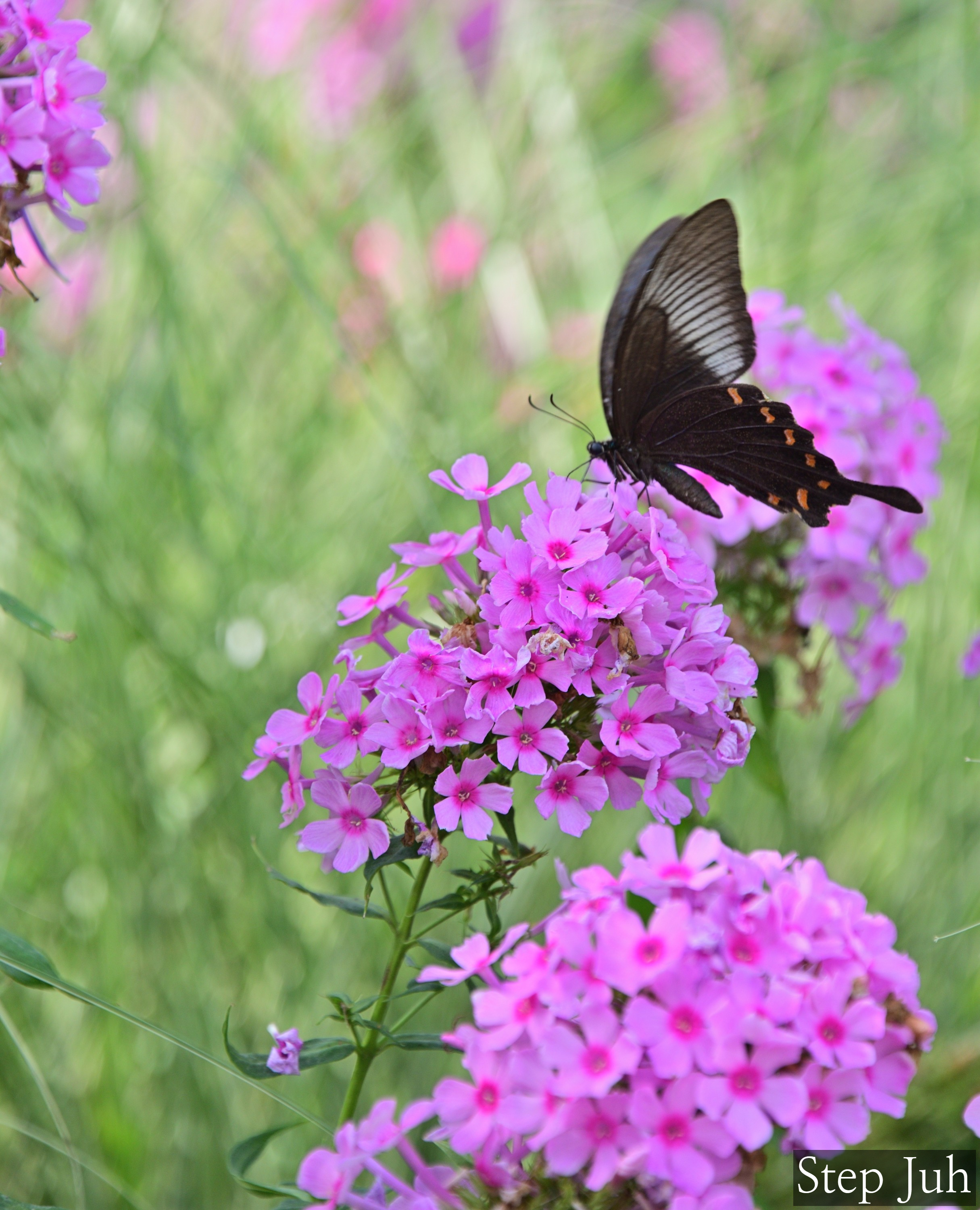 꽃밭 속 오가는 호랑나비 보일 듯 말 듯 하고,